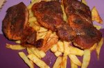 Pulpele si aripile se spala bine si se sterg de apa, Condimentele se amesteca toate intr-un bol, Pulpele si aripile se ung cu ulei si se condimenteaza, Se aseaza carnea in punga si se leaga,se aseaza punga in tava si se inteapa din loc in loc Se da tava la cuptor cca 60 min,...