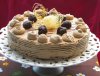Blat: Intr-un castron punem faina, cacaua, zaharul, nuca (150 g macinata si 50 g zdrobita) si praful de sare. Incorporam in ingredientele uscate apa si uleiul si amestecam cu telul. Adaugam gemul...