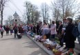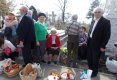 Oamenii se așează de o parte și de alta a ușii de la intrarea în biserică, în șiruri lungi, având coșurile pline de: pască, ouă roșii, fructe, cozonaci, dulciuri, mâncare, vin, pachețele pentru săraci, flori...De toate. Tot ce se poate mânca, se aduce acolo, pentru că se zice că se sărbătorește Paștele cu morții (care sunt liberi în acea zi!). Se curăță dinainte mormintele, se împodobesc cu flori și se așteaptă oficierea slujbei. Toți preoții orașului se deplasează la cimitire, oficiază slujba de pomenire a morților (care se aude de la mare distanță, amplificată de aparate sofisticate), iar apoi ies din biserică pentru a stropi cu agheazmă ofrandele aduse și pe credincioși. Uneori se dădea anafură și se colectau: ouă roșii, colaci, fructe, pască și cozonac, pe care le dăruiau cu drag credincioșii ca să fie duse la azile de bătrâni, sau la cei nevoiași. (Astăzi, nu a fost decât stropirea cu agheazmă, după slujbă, la care am asistat foarte puțin, pentru că am ajuns destul de târziu acolo, iar parcarea ne-a luat, de asemenea, destul timp.) După care toți au plecat la morminte, au pregătit pomelnicele și banii, au aranjat mâncarea, paharele și cănițele, sticlele cu vin, apă și suc...Am avut norocul că preotul care a fost repartizat pentru parcela noastră a venit destul de repede, așa că după citirea pomelnicelor și stropirea mormintelor cu vin, am rămas să oferim celor săraci care ne-au împresurat imediat (căci ei urmează itinerariul preotului) pachețelele pregătite pentru ei. După ce am fost, unii dintre noi, prin tot cimitirul să aprindem lumânări la mormintele celor adormiți din neamul nostru ne-am întors am ciocnit ouă roșii și am lăsat cojile pe morminte. Am mâncat de toate, a băut fiecare ce-a vrut (apă, suc, vin, sau țuică)... În alți ani am dus și cafea, dar acum se pare că am uitat cu toții. Am fost prezenți mai puțini din familie, anul acesta, șase cu toții, dar am povestit despre cei plecați dintre noi, întâmplări frumoase și chiar vesele, căci Paștele Blajinilor, așa cum am mai scris nu este o sărbătoare a tristeții, ci a veseliei. A fost o zi superbă, însorită, fără a fi toridă (dar a lăsat urme grave pentru mine, căci am uitat de anii trecuți să folosesc crema de protecție solară!) fără adieri de vânt care să ne stingă lumânările, fără prea multe insistențe din partea unora, fără ploaie (deși dimineață, când am plecat din Piatra Neamț, ploua...). O zi foarte plăcută. (Mi-amintesc că în alți ani era frig, ploua tare, pantofii erau îngreunați de noroi, iar lumânările se stingeau imediat...)