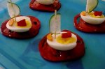 ouale se fierb 10 minute, apoi se lasa sub jet rece de apa. le decojim si le taiem in doua pe lung...eu nu am schimbat continutul oului ca ai mei copii nu ma iaveau rabdare. :) am presarat doar sare. pe o scobitoare,infingem jumatate felie castravete ,iar scobitoarea o infingem in ou. in...