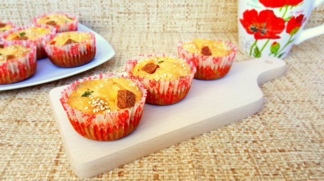 Aperitiv briose cu salam, mazare, porumb si morcov