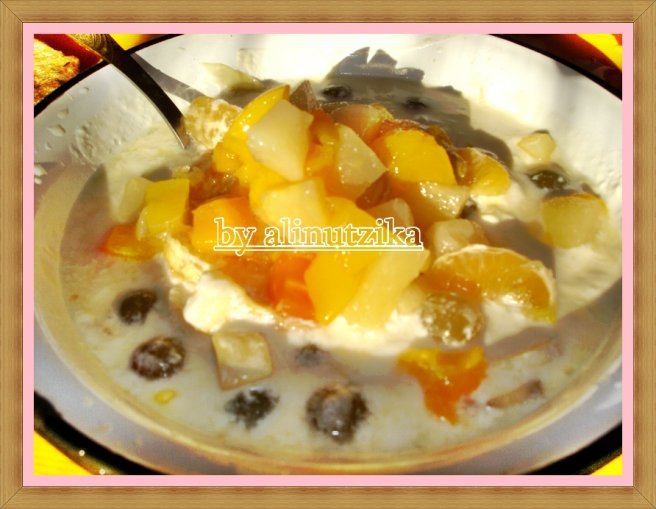 Iaurt cu fructe tropicale, struguri si clementine