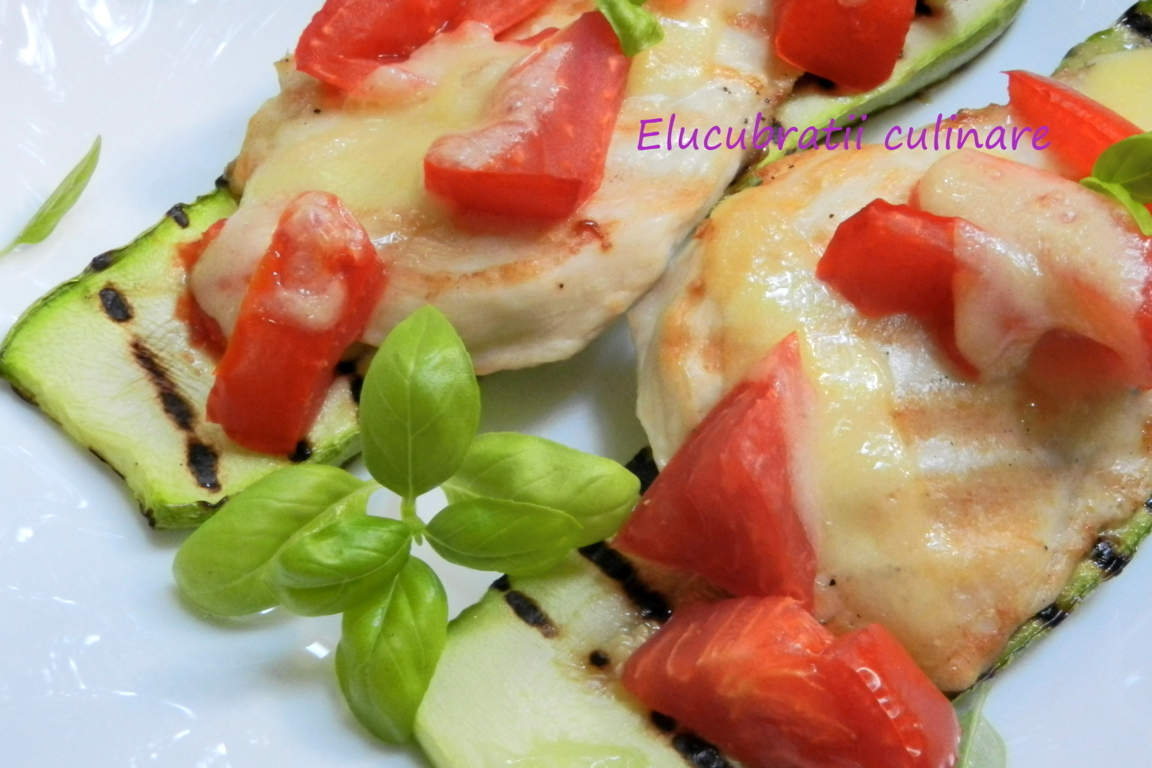 Piept de pui gratinat pe pat de dovlecel