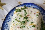 Taiem pieptul de pui in cubulete mici, pe care le punem la fiert in apa cu putina sare . Cu 5 minute inainte de a fi gata adaugam boabele de mazare.Scurgem pieptul de pui si mazarea si le lasam sa se raceasca. Taiem ardeiul gras cubulete. Radem telemeaua sau o sfaramam cu o furculita si o...