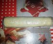 Intindem aluatul alb si cel cu cacao in 2 foi dreptunghiulare. Ungem foaia alba cu albus, puneam foaia neagra deasupra, dam din nou cu albus dupa care o rotolam si dam la frigider din nou pentru o ora.