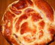 Aluatul il impartim in 3. Luam cate o bucata si o intindem in foaie. Adaugam crema de lamaie si rulam cu grija. Asezam in mijloc in forma de cerc in tava unsa si tapetata cu faina. A 2-a bucata o intindem si adaugam crema de cacao, rulam cu grija adaugam in tava in continuare. Ultima bucata o intindem si o ungem cu crema de lamaie, adaugam in tava.