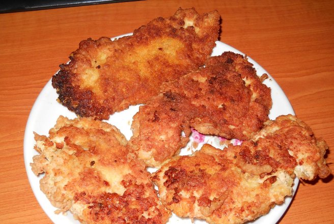 se ia cate o felie de piept de pui se trece prin fulgi de porumb -ou-iar fulgi de porumb