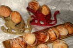 Intre timp curatam dovleceii si ii taiem felii,rosiile le spalam si le taiem felii,