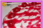 Gelatina o dizolvam in siropul de zmeura, o lasam cca 5 minute dupa care o dizolvam pe baie de aburi, o amestecam cu...